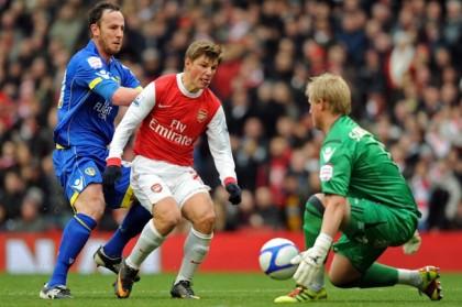 Δύο φορές ζήτησε πέναλτι η Άρσεναλ και η τρίτη ήταν η φαρμακερή, όταν ο διαιτητής στο 90’ είδε το τράβηγμα του Πάρκερ στον Γουόλκοτ με τον Φάμπρεγκας να στήνει την μπάλα στα 11 βήματα και να την στέλνει από εκεί στα δίχτυα κάνοντας το 1-1.