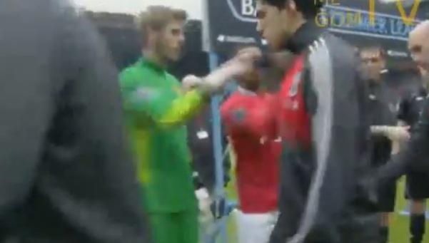 Ο Λουίς Σουάρες προσπάθησε να αποφύγει τη χειραψία με τον Πατρίς Εβρά κατά την παρουσίαση των ενδεκάδων της Λίβερπουλ και της Μαν. Γιουνάιτεντ στον αγωνιστικό χώρο του «Ολντ Τράφορντ».