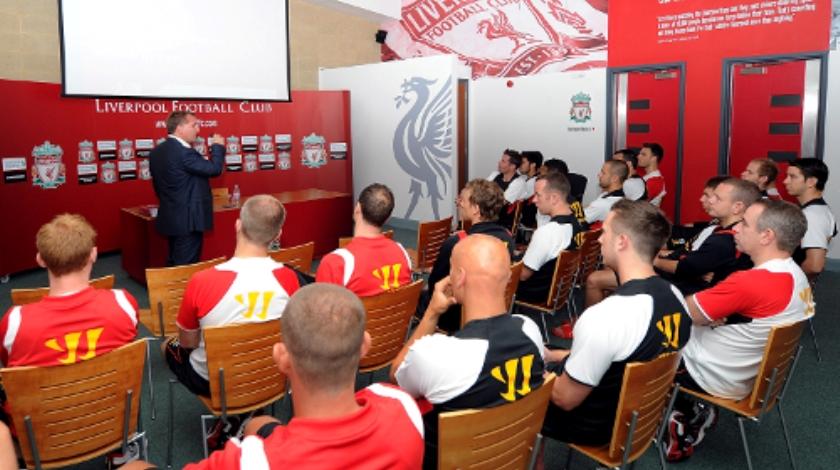 Η παρθενική συνάντηση των παικτών της Λίβερπουλ με τον Μπρένταν Ρότζερς δεν περιλάμβανε τρέξιμο, ασκήσεις και προπόνηση, αλλά …μάθημα, με τον νέο τεχνικό των «κόκκινων» να συγκεντρώνει τους ποδοσφαιριστές του σε μία αίθουσα και να τους δίνει το στίγμα για τη νέα σεζόν.