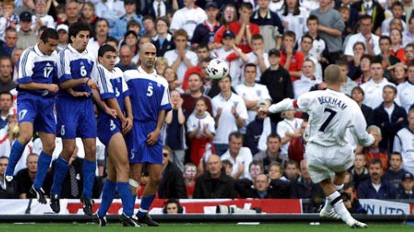 Αυτό του Μπέκαμ στο «Old Trafford» βρέθηκε στην πρώτη θέση, αφού ήταν εκείνο με το οποίο τα «τρία λιοντάρια» εξασφάλισαν μία θέση στο Παγκόσμιο Κύπελλο του 2002.