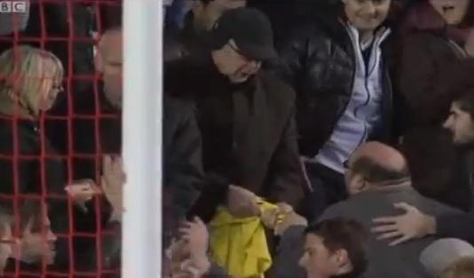 Μια φανέλα του Μπραντ Φρίντελ λίγο έλειψε να οδηγήσει σε διαπληκτισμό δύο μεσήλικες κυρίους μετά την αναμέτρηση της Τότεναμ με τη Σαουθάμπτον. Οι δυο τους άρχισαν να τραβούν με μανία το «λάφυρο» προς το μέρος τους και να βρίζονται.
