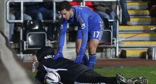 Η νέα λήψη εμφανίστηκε σήμερα στον αγγλικό Τύπο και δείχνει ξεκάθαρα ότι ο Αζάρ δεν κλότσησε στα πλευρά το ballboy αλλά βρήκε μόνο την μπάλα στην προσπάθειά του να συνεχιστεί το παιχνίδι γρήγορα.