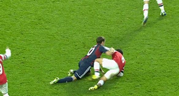 Ένα δυνατό μαρκάρισμα του Μίκελ Αρτέτα εξόργισε τον άλλοτε διεθνή φορ, που απάντησε με ένα χτύπημα στον Ισπανό μέσο κι αυτός ανταπέδωσε. Στον καβγά μπήκε ο Τζακ Γουίλσιρ που θέλοντας να προστατεύσει τον συμπαίκτη του στους «κανονιέρηδες» απώθησε τον Όουεν και του είπε κάποια «γαλλικά».