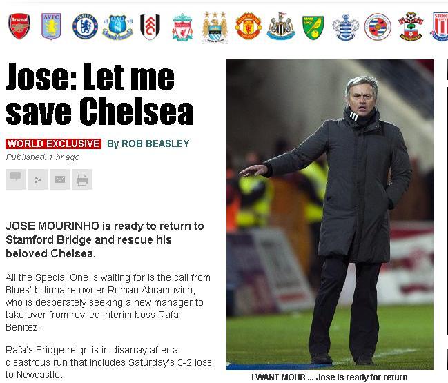 Όπως προσθέτει το δημοσίευμα, μάλιστα, ο «Special One» θέλει να επιστρέψει στην Τσέλσι, ενώ χαρακτηριστικός είναι και ο τίτλος του ρεπορτάζ, «Ζοσέ: Αφήστε με να σώσω την Τσέλσι».