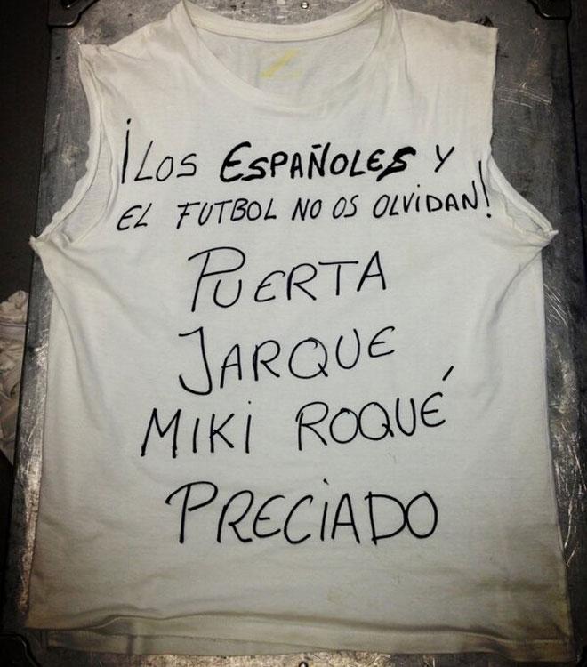 Ο Ισπανός αμυντικός φωτογράφισε μία φανέλα του, με την οποία αφιερώνει την επιτυχία στους αδικοχαμένους συμπατριώτες του ποδοσφαιριστές Αντόνιο Πουέρτα, Ντάνιελ Τζάρκε και Μίκι Ροκέ, όπως και στον προπονητή Μανουέλ Πρεθιάδο.