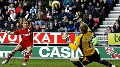 Είχαμε καιρό να δούμε τέτοια Λίβερπουλ! Η ομάδα του Ράφα Μπενίτεθ έπαιξε καλό και συνάμα απλό ποδόσφαιρο και ξέσπασε πάνω στην Γουίγκαν, παίρνοντας την νίκη με σκορ 4-0, στο «JJB». Μάλιστα, το τελικό σκορ διαμορφώθηκε στο πρώτο ημίχρονο του παιχνιδιού. Τα γκολ για τους «κόκκινους» έβαλαν οι Μπέλαμι (2), Κάιτ και ΜακΚάλοχ (αυτογκολ).