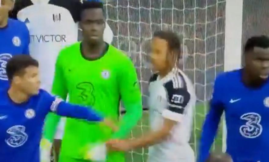 Ο φακός... συνέλαβε τον ποδοσφαιριστή της Φούλαμ να τραβά το βέλκρο (κριτς κρατς αν θέλετε) από τα γάντια του Γάλλου γκολκίπερ, ο οποίος πάλευε μάταια να τον σταματήσει...