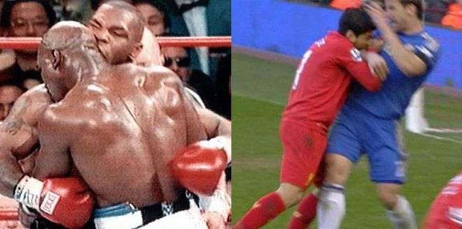 Η εικόνα του Λουίς Σουάρες να δαγκώνει τον Μπράνισλαβ Ιβάνοβιτς στην αναμέτρηση της Λίβερπουλ με την Τσέλσι έφερε στο μυαλό όλων τον Μάικ Τάισον, ο οποίος το 1997 είχε κόψει ένα κομμάτι από το αυτί του Εβάντερ Χόλιφιλντ.