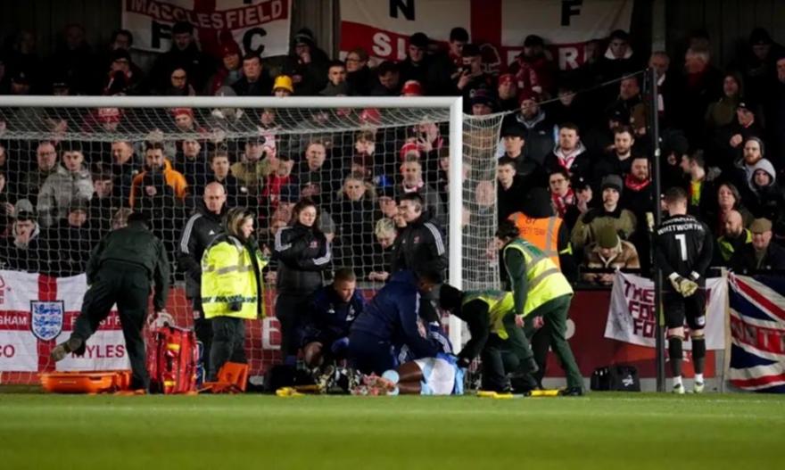 Ο παίκτης μεταφέρθηκε με φορείο εκτός αγωνιστικού χώρου, με τους φίλους της Έξετερ να χειροκροτούν τον άτυχο φορ της Νότιγχαμ.