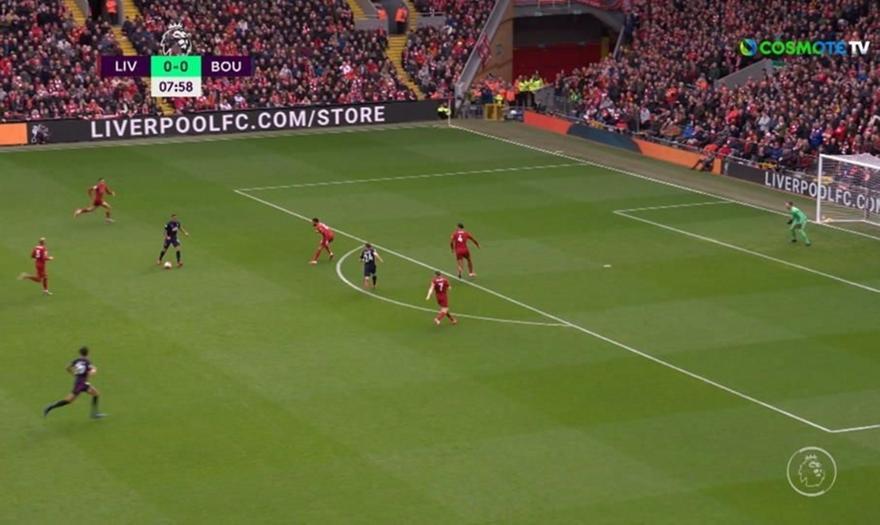 Σε αντεπίθεση στο 8', ο Κάλουμ Γουίλσον έστειλε τη μπάλα στα δίχτυα της Λίβερπουλ, έπειτα από ασίστ του Λερμά και έδωσε τα ηνία του σκορ στην Μπόρνμουθ.