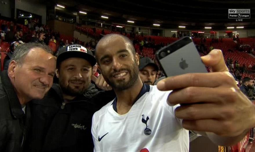 Και ενώ σε κάποια πρωταθλήματα η αντίπαλη ομάδα είναι ορκισμένος εχθρός, σε κάποια άλλα απλώς… δεν είναι. Μετά το –βαρύ- 3-0 με το οποίο ηττήθηκε η Μάντσεστερ Γιουνάιτεντ από την Τότεναμ μέσα στην έδρα της, οι φίλοι των γηπεδούχων έβγαζαν φωτογραφίες με τον Λούκας Μόουρα, ναι, τον παίκτη της Τότεναμ και MVP του αγώνα.