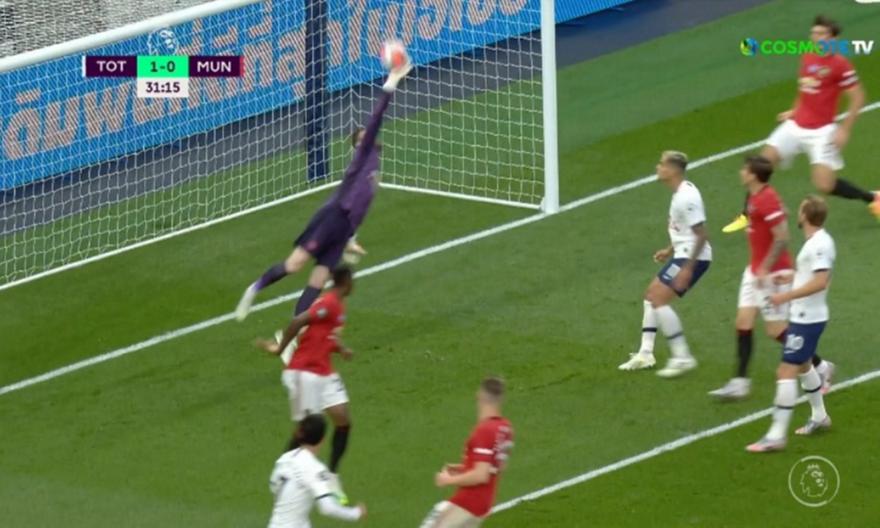 Στο γκολ της Τότεναμ έχει ευθύνη, αλλά λίγο αργότερα ο Νταβίντ Ντε Χέα έκανε μια επέμβαση μεγάλης κλάσης. Σε δύσκολη κεφαλιά του Σον ο γκολκίπερ της Μαν. Γιουνάιτεντ απέκρουσε με εντυπωσιακή εκτίναξη.
