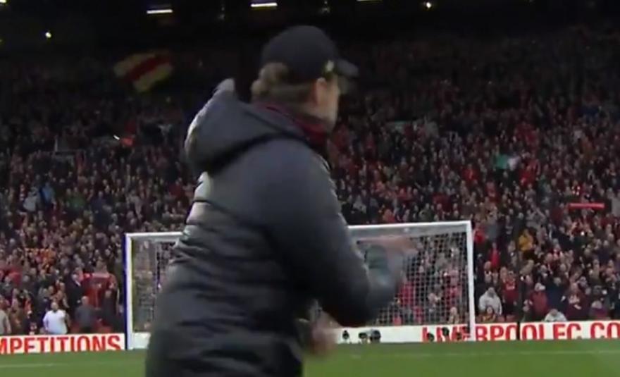 Ο Γερμανός κόουτς στο σφύριγμα της λήξης ξέσπασε μπροστά στο Kop, με τον κόσμο να βγάζει ιαχή θριάμβου και τον Κένι Νταλγκλίς να παρακολουθεί ευτυχισμένος από τις εξέδρες!