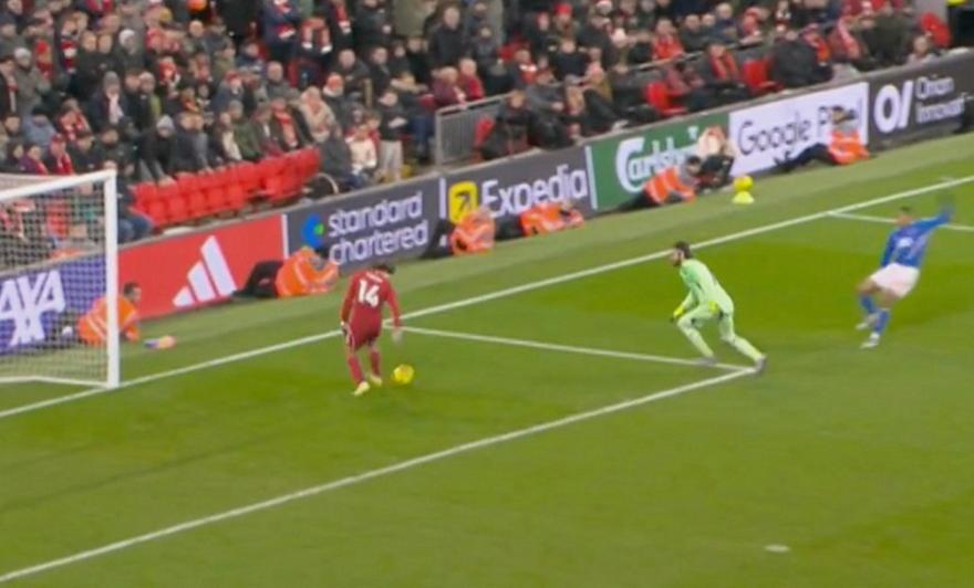 Ο φορ της Λίβερπουλ αποσόβησε το γκολ και την ήττα της ομάδας του Σλοτ, ο οποίος σίγουρα ξεφύσηξε με τεράστια ανακούφιση μετά από τη φάση...