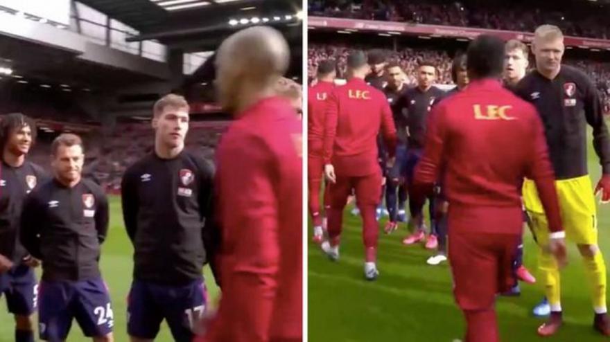 Στο ματς της Λίβερπουλ με την Μπόρνμουθ οι ποδοσφαιριστές το τήρησαν, ωστόσο, γελούσαν καθώς ο ένας περνούσε μπροστά από τον άλλον μετά την παράταξή τους, για το γεγονός πως δεν τους επιτρεπόταν να χαιρετηθούν.