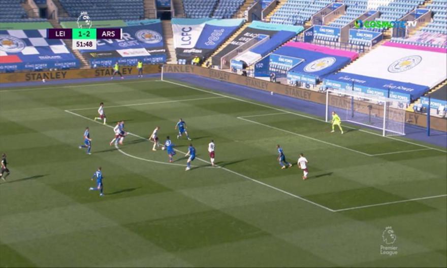 Ολοκληρώνει την ανατροπή της στο Λέστερ η Άρσεναλ, που έφτασε σε 3ο τέρμα στο 52’, με τον Πεπέ να στέλνει την μπάλα στην κενή εστία μετά από ασίστ του Γουίλιαν.