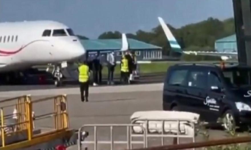 Romelu Lukaku leaving Biggin Hill Airport after landing in London.