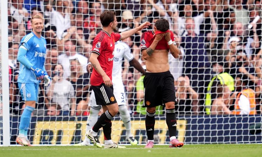 Ο Μπρούνο Φερνάντες στο 38ο λεπτό της εξόρμησης της Γιουνάιτεντ στο Craven Cottage αστόχησε από την άσπρη βούλα, χάνοντας την ευκαιρία να βάλει μπροστά την ομάδα του από το πρώτο μέρος.
