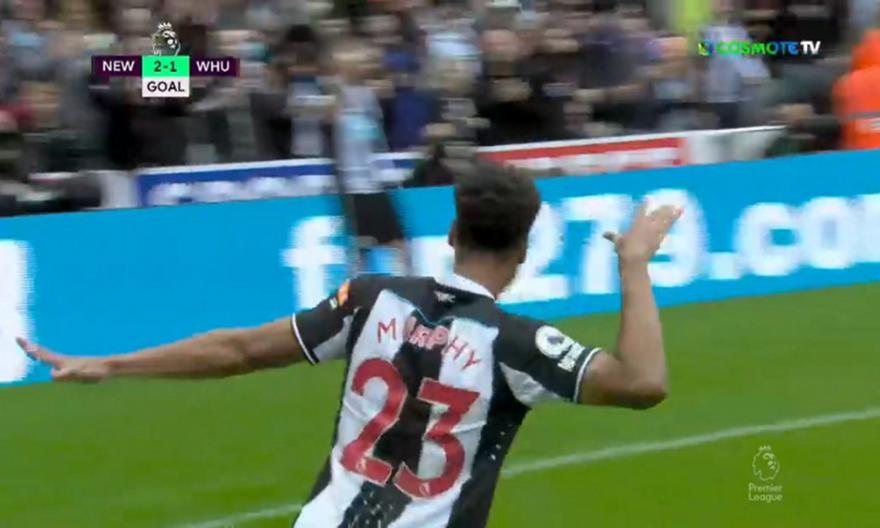Η Νιούκαστλ ανέκτησε το προβάδισμα στο εντός έδρας παιχνίδι με τη Γουέστ Χαμ, με τον Μέρφι να στέλνει την μπάλα στα δίχτυα με κεφαλιά στο 40’.