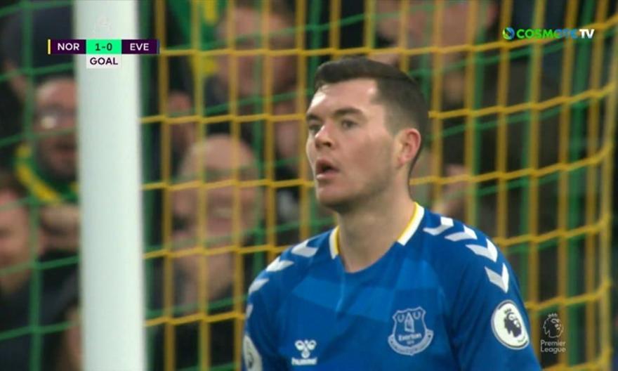 Ραντεβού με την... ατυχία είχε ο Μάικλ Κιν στο 16ο λεπτό, με τον αμυντικό της Έβερτον να στέλνει άθελά του την μπάλα στα δίχτυα της ομάδας του και να βάζει σε θέση οδηγού από νωρίς τη Νόριτς.