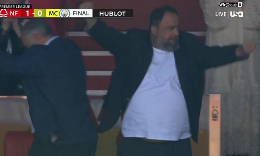 Nottingham Forest owner Evangelos Marinakis congratulated all of his players individually after they beat Man City ??