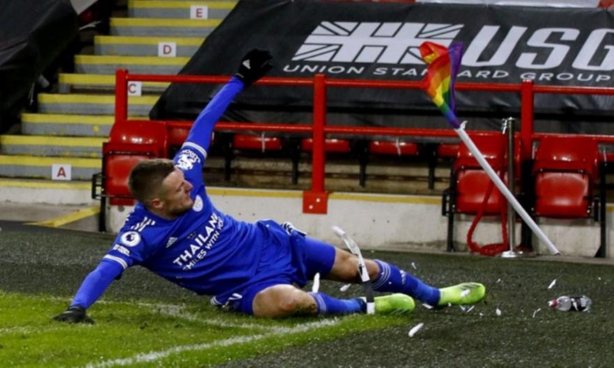 Ο Τζέιμι Βάρντι έδωσε τη νίκη στη Λέστερ απέναντι στη Σέφιλντ Γιουνάιτεντ στο 90’ και… έσπασε το σημαιάκι του κόρνερ με προβολή στον έξαλλο πανηγυρισμό του!