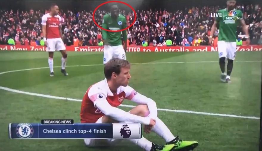 Τρομερό στιγμιότυπο από το φινάλε της αναμέτρησης της Άρσεναλ με τη Μπράιτον, όταν ο Μπισούμα ξεκαρδίστηκε βλέποντας τον Μονρεάλ να κάθεται στο έδαφος γνωρίζοντας πως χάθηκε η τετράδα!