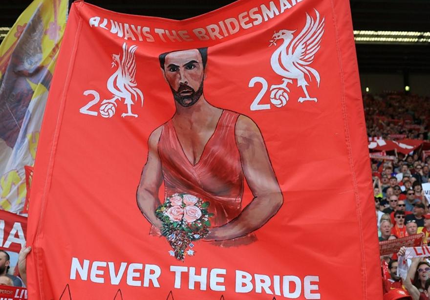 «Πάντα παράνυφος, ποτέ νύφη», ήταν η επιγραφή στο πανό, που προφανώς ήθελε να τονίσει το γεγονός ότι ο Αρτέτα πάντα είναι σε... δεύτερο πλάνο, με την ομάδα του να τερματίζει πέρσι πίσω από τη Μάντσεστερ Σίτι και φέτος πίσω από τη Λίβερπουλ.