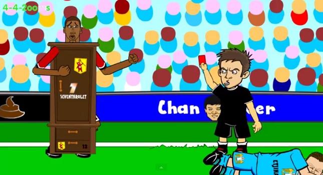 Πρώτα από όλα σχολιάζει με μοναδικό τρόπο την αποβολή του Κρις Σμόλινγκ και στη συνέχεια στέκεται στην αντίδραση του Λουίς Φαν Χάαλ και τελειώνει με γκολ του Σέρχιο Αγουέρο.