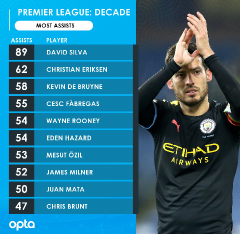 Συγκεκριμένα, ο πρώην διεθνής χαφ μετράει 89 τελικές πάσες έναντι 62 του Κρίστιαν Έρικσεν που βρίσκεται στη δεύτερη θέση και έχει 31 περισσότερες από τον Κέβιν Ντε Μπρόινε που είναι τρίτος (με 58).