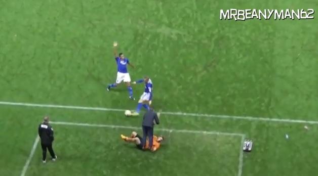 Έτσι μετά από μία κόντρα κοντά στην πλάγια γραμμή και μπροστά στον πάγκο των φιλοξενούμενων, ανέτρεψε-βοηθούμενος και από το γλιστερό τερέν-τον προπονητή τους, Λι Τζόνσον.