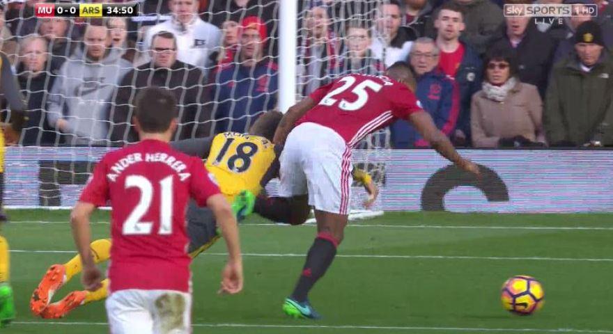 Μια φάση που έβαλε… φωτιά συνέβη στο 35ο λεπτό της αναμέτρησης ανάμεσα στην Μάντσεστερ Γιουνάιτεντ και την Άρσεναλ. Συγκεκριμένα, ο Βαλένσια έκανε την «ποδιά» στον Μονρεάλ, τον πέρασε και μπήκε στην περιοχή. Ο αμυντικός των «κανονιέρηδων» τράβηξε ελαφρά τον αντίπαλό του αλλά όπως έπεσε τον βρήκε και στα πόδια, ωστόσο ο Αντρέ Μάρινερ έδειξε «παίζετε». Αυτό, φυσικά, έφθανε για να… τρελάνει τον Ζοσέ Μουρίνιο, που χτυπιόταν στον πάγκο της Γιουνάιτεντ για την παράβαση που δεν καταλογίστηκε.