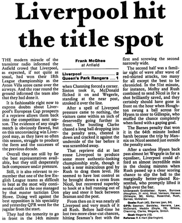Ενδιαφέρον έχει το ρεπορτάζ του «Observer» στο οποίο αναφέρεται η ανάλυση του αγώνα κόντρα στην ΚΠΡ, στον οποίο η Λίβερπουλ επικράτησε 2-1 και κατάφερε να πάρει το πρωτάθλημα του 1990.