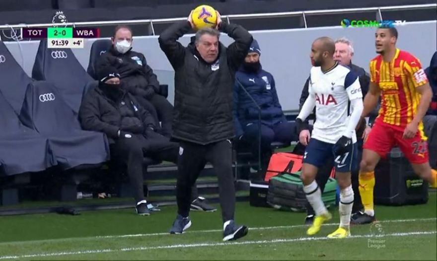 Με το ματς να έχει φτάσει στις καθυστερήσεις και τη Γουέστ Μπρομ να χάνει με 2-0 από την Τότεναμ, ο προπονητής των «μπάγκις», Σαμ Άλαρνταϊς, είχε όρεξη για πλακίτσα. Με τη μπάλα λοιπόν να φτάνει στα πόδια του, ετοιμάστηκε να... εκτελέσει ο ίδιος το πλάγιο, προτού δώσει φυσικά τη μπάλα στον Πέλτιερ...