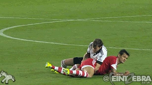Μετά από ένα μαρκάρισμα του Κροάτη αμυντικού στον αντίπαλό του από τη Βενεζουέλα, οι δυο τους βρέθηκαν αγκαλιά στο χορτάρι και ο τελευταίος από τα νεύρα του γρονθοκόπησε τα οπίσθια του πρώτου!