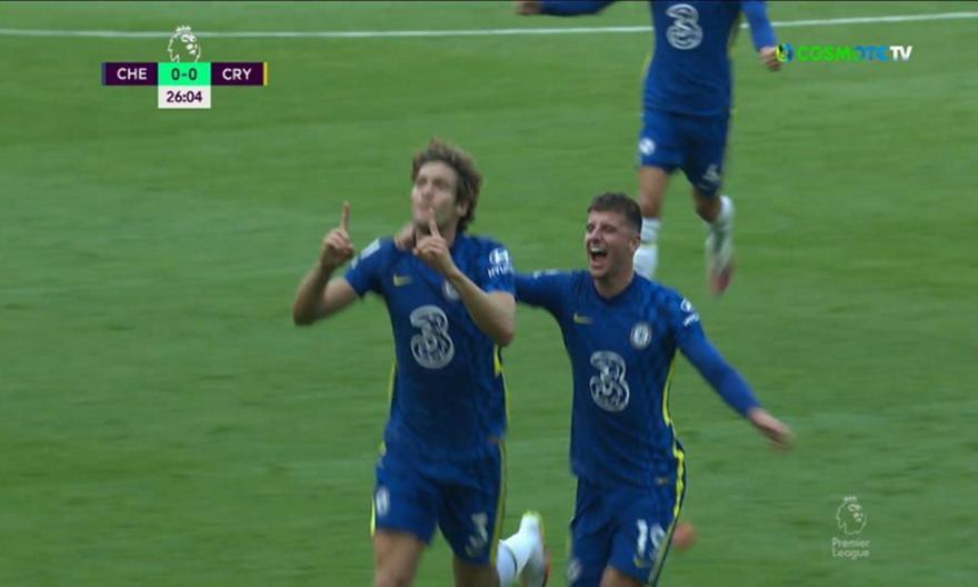 Με απευθείας εκτέλεση φάουλ του Μάρκος Αλόνσο στο 27’, η Τσέλσι άνοιξε το σκορ στην εντός έδρας αναμέτρηση με την Κρίσταλ Πάλας.