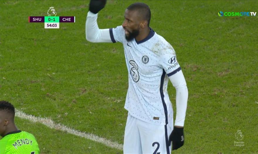 «Δράστης» ο Αντόνιο Ρούντιγκερ, ο οποίος παρότι είχε χρόνο να σκεφτεί τι θα κάνει αφού έγινε αποδέκτης της μπάλας μέσα στην περιοχή, τη γύρισε βιαστικά στον Μεντί στέλνοντάς τη στα δίχτυα.
