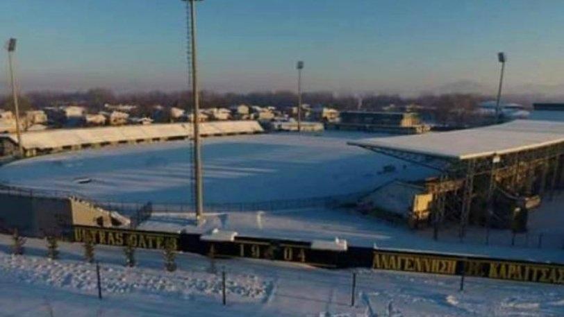 Το γήπεδο της Καρδίτσας παραμένει σκεπασμένο με χιόνι και πάγο, με συνέπεια να είναι αδύνατο να παιχτεί ποδόσφαιρο. Έτσι η Football League ανακοίνωσε την αναβολή του προγραμματισμένου για το μεσημέρι της Κυριακής αγώνα για τη δέκατη αγωνιστική.