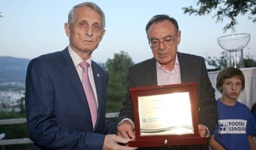 Ο πρόεδρος της ΕΠΟ βραβεύτηκε από τον ομόλογό του στη διοργανώτρια αρχή του δεύτερου τη τάξει πρωταθλήματος, για την προσφορά του στο άθλημα, στην Ελλάδα.