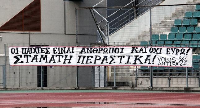 «Οι παίκτες είναι άνθρωποι και όχι ευρώ. Σταμάτη περαστικά», ήταν αυτό που ανέγραφε το πανό των οργανωμένων οπαδών.