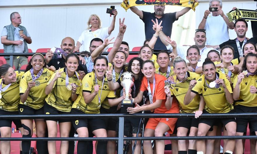Τα σάρωσε όλα η ΑΕΚ! Σε έναν κακό τελικό στο άδειο Πανθεσσαλικό, η Ένωση, επιβεβαίωσε ότι είναι η κυρίαρχος στο ποδόσφαιρο γυναικών κατακτώντας για πρώτη φορά στην ιστορία της το νταμπλ, αφού μετά το πρωτάθλημα πήρε και το Κύπελλο Ελλάδας επικρατώντας 2-0 του Παναθηναϊκού!