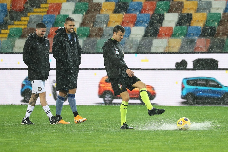 Η καταρρακτώδης βροχή στο Ούντινε μετέτρεψε σε… λίμνη τον αγωνιστικό χώρο και το προγραμματισμένο για τις 16:00 ματς στο πλαίσιο της 10η αγωνιστικής της Serie A θα διεξαχθεί σε διαφορετική ημερομηνία.