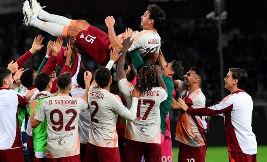 Hummels celebrated by Roma teammates in final game https://t.co/daNHTo9XaK