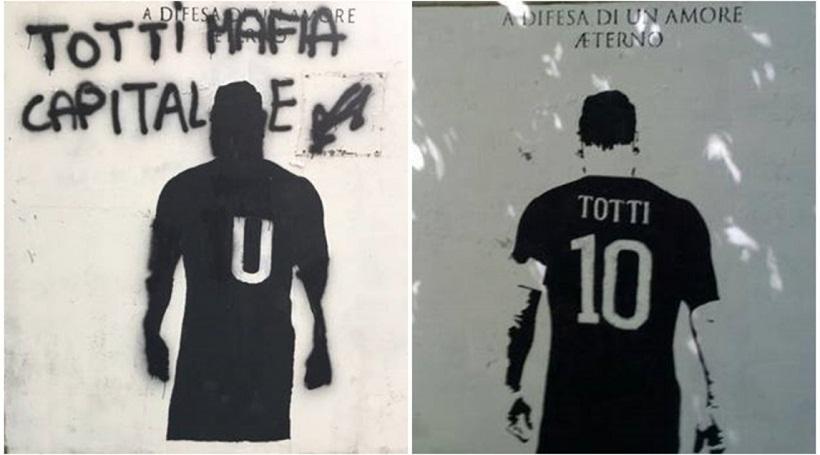 Όμως οι βάνδαλοι ξαναχτύπησαν και κατέστρεψαν την όμορφη τοιχογραφία γράφοντας «Totti mafia capitale» (μτφ: «Τότι, μαφία της πρωτεύουσας»).