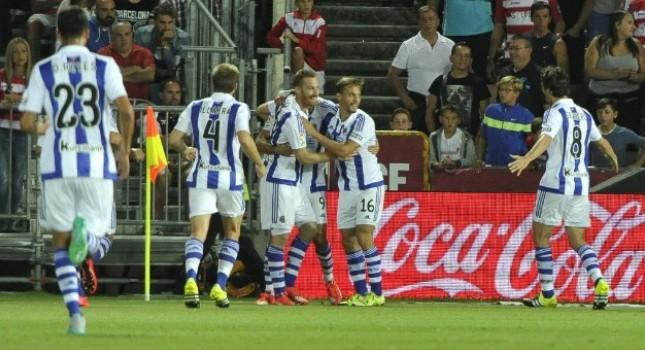 Η Σοσιεδάδ νίκησε με 3-0 τη Γρανάδα στο «Νουέβος Λος Κάρμενες», στο πλαίσιο της πέμπτης αγωνιστικής της Primera Division και πέτυχε την πρώτη της νίκη στη φετινή διοργάνωση και ανέβηκε βαθμολογικά, ενώ νίκησε ξανά στο ισπανικό πρωτάθλημα μετά τον περασμένο Μάιο, δείχνοντας ικανή για την ανάκαμψη στη συνέχεια.