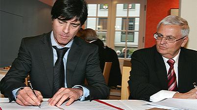 Το προηγούμενο συμβόλαιο του Γιόακιμ Λεβ εξέπνεε μετά την τελική φάση του Ευρωπαϊκού Πρωταθλήματος. Η ομοσπονδία του πρότεινε επέκταση για τέσσερα χρόνια, ωστόσο κατόπιν επιθυμίας του προπονητή να μη δεσμευτεί για τόσο μεγάλο χρονικό διάστημα, η συμφωνία προβλέπει πως θα κληθεί να οδηγήσει το αντιπροσωπευτικό συγκρότημα της χώρας αρχικά στα τελικά του Παγκοσμίου Κυπέλλου του 2010, που θα γίνει στη Νότιο Αφρική.
