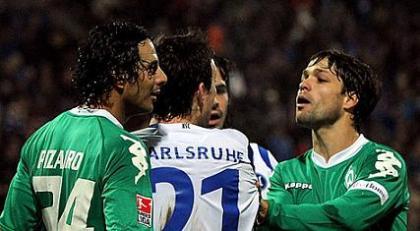Σαν να μην έφτανε η ήττα με 1-0 από την ουραγό μέχρι χθες Καρλσρούη, ήρθε και ο κίνδυνος τιμωρίας του Ντιέγκο για τη Βέρντερ Βρέμης. Ο Βραζιλιάνος μέσος έπιασε από το λαιμό αντίπαλό του (Κρίστιαν Άιχνερ), κάτι που δεν έγινε μεν αντιληπτό από το διαιτητή, αλλά καταγράφηκε από τον τηλεοπτικό φακό και βάσει του βίντεο κλήθηκε σε απολογία. Πλέον απειλείται με αρκετές αγωνιστικές ποινής, καθότι δεν είναι η πρώτη φορά που παρεκτρέπεται. Στις 25 Φεβρουαρίου του 2008 είχε χτυπήσει με κουτουλιά τον Σωτήρη Κυργιάκο στην αναμέτρηση της Βέρντερ με την Άιντραχτ και του είχε επιβληθεί «καμπάνα» πέντε αγωνιστικών.