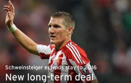 Με την ατάκα «για σας το ‘κανα» προς τους οπαδούς της Μπάγερν Μονάχου, δια μικροφώνου, ο Μπάστιαν Σβαϊνστάιγκερ έκανε γνωστό πως ανανέωσε τελικά το συμβόλαιό του με τους Βαυαρούς. Αυτό συνέβη μετά το 3-0 επί της Ζανκτ Πάουλι στην “Allianz Arena”, στο πλαίσιο της Bundesliga. Ο Γερμανός άσος επέκτεινε μέχρι το 2016 το συμβόλαιό του, το οποίο κανονικά έληγε το καλοκαίρι του 2012.