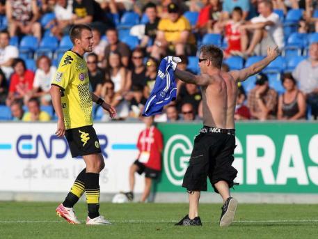 Το καλοκαίρι δεν σημαίνει και... άδεια για τους «κάφρους» των γηπέδων. Η «αιώνια» κόντρα της Σάλκε με τη Ντόρτμουντ έκανε την εμφάνισή της σε ένα κατά τα άλλα ήσυχο φιλικό ματς. Οι πρωταθλητές αντιμετώπιζαν στην Αυστρία την Πολόνια Βαρσοβίας (έχασαν με 2-1) και λίγο πριν το τέλος, ένας οπαδός των «βασιλικών μπλε» εισέβαλε στον αγωνιστικό χώρο. Κρατούσε μία φανέλα της Σάλκε (με το όνομα του Ραφίνια που πλέον ανήκει στην Μπάγερν) και πήγε να πικάρει τον Κέβιν Γκρόσκροϊτς. Ο 22χρονος μέσος της Μπορούσια ήταν εμφανώς οργισμένος, αλλά κατάφερε να συγκρατηθεί μέχρι ο εισβολέας να απομακρυνθεί από το γήπεδο.