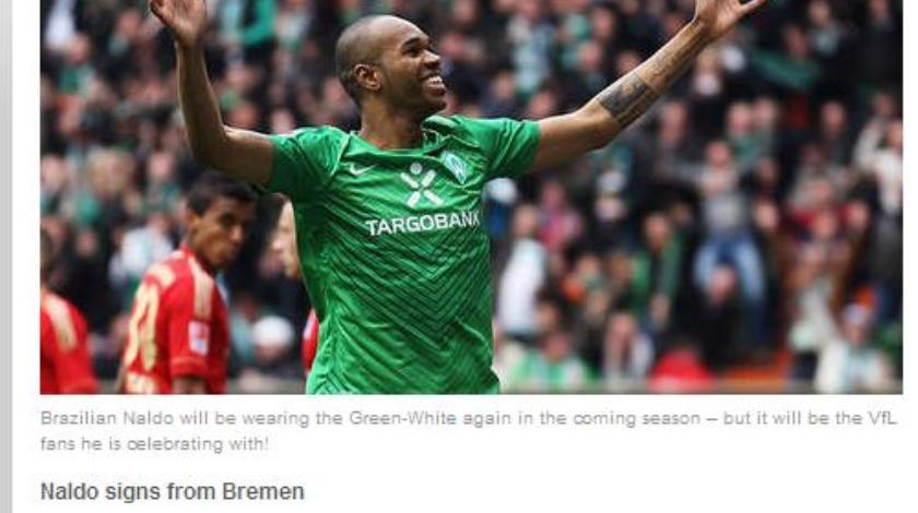«Η Βόλφσμπουργκ εξασφάλισε τις υπηρεσίες του Βραζιλιάνου κεντρικού αμυντικού Νάλντο από την ομάδα της Βέρντερ Βρέμης. Ο 29χρονος που είναι ακόμα στην προετοιμασία της Βέρντερ στην Αυστρία, αναμένεται αύριο να έρθει στην Βόλφσμπουργκ», ήταν η ανακοίνωση του συλλόγου, συμπληρώνοντας ότι: